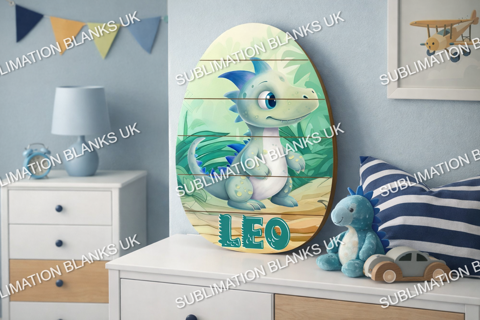 Both come with a rope and 2 hinges for hanging (need to be attached after sublimation). These can also be used as a standing decoration leaned against a wall.