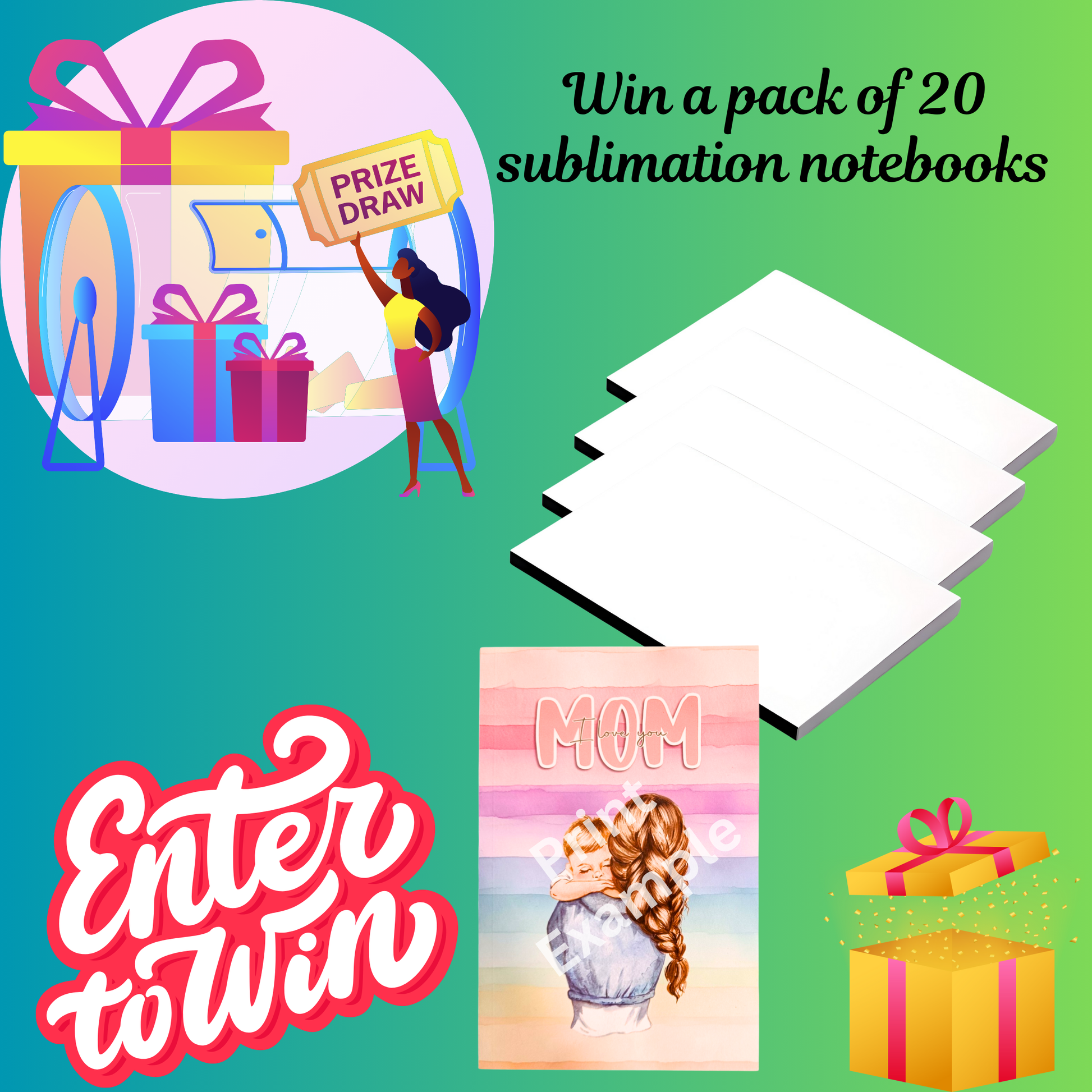 Win a Pack of 20 A5 sublimation notebooks with free delivery for only £1.00 per entry!